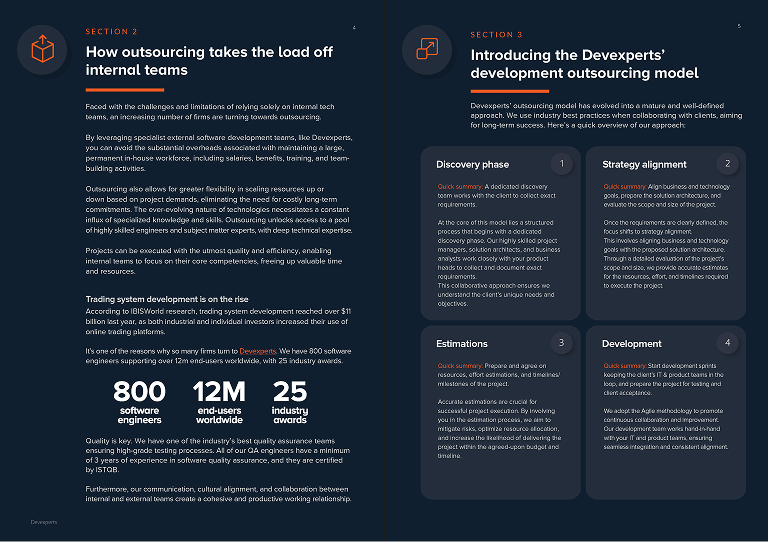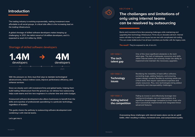 A guide for trading firms to blend in-house teams with outsourced expertise: when to outsource, how to structure collaboration, and how to keep quality, speed, and control.